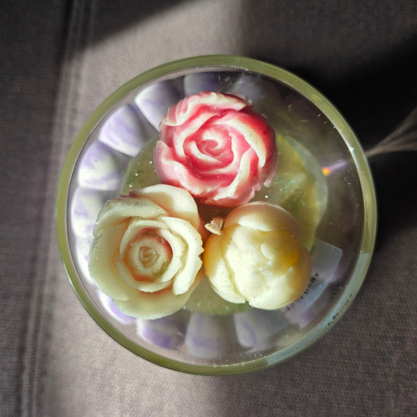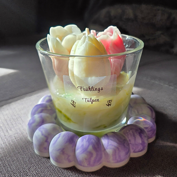 • Handgemachte Tulpenkerze im Glas