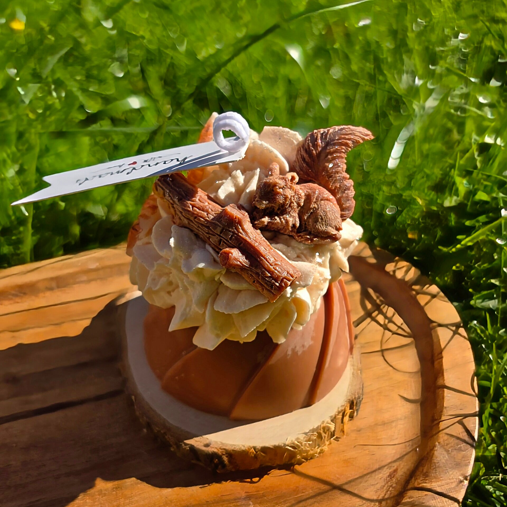 Jede Kerze wird in liebevoller Handarbeit hergestellt und verzaubert durch ihr einzigartiges Design und ihren angenehmen Duft nach Orange und Vanille-Toffee