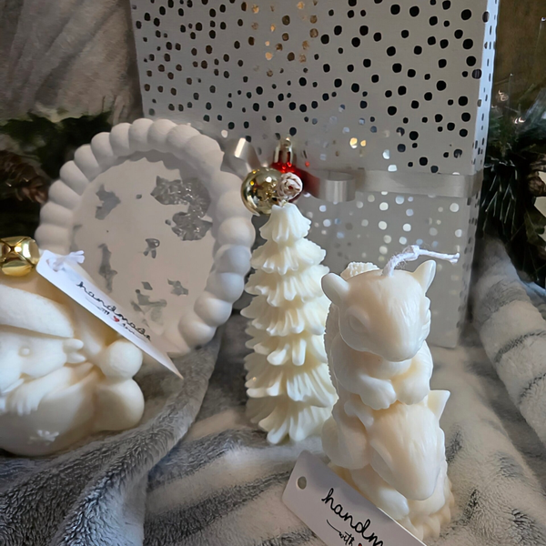 Dieses festliche Weihnachtskerzen-Set besteht aus wunderschön gestalteten, handgemachten Sojawachskerzen in winterlichen Motiven – perfekt als Geschenk, kleine Aufmerksamkeit oder als duftende Deko für dein Zuhause.