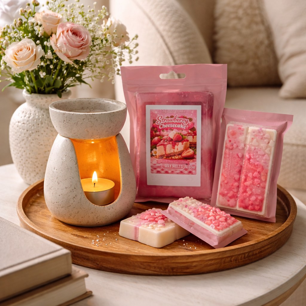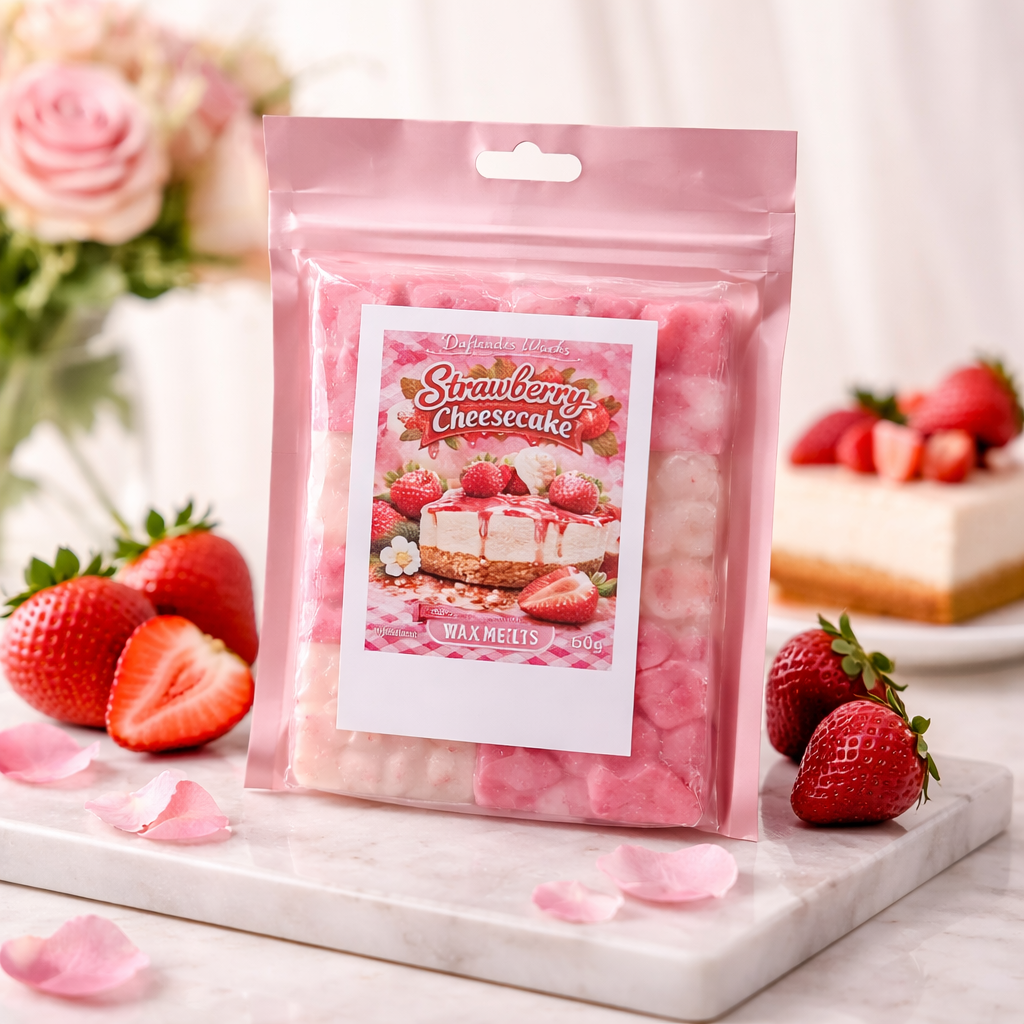 Unsere Strawberry Cheesecake Wax Melts verströmen einen herrlich cremigen Duft aus frisch gebackem Käsekuchen, verfeinert mit saftigen Erdbeeren und einer zarten Vanillenote. Warm, süß und einfach unwiderstehlich – wie ein Dessert für die Sinne.